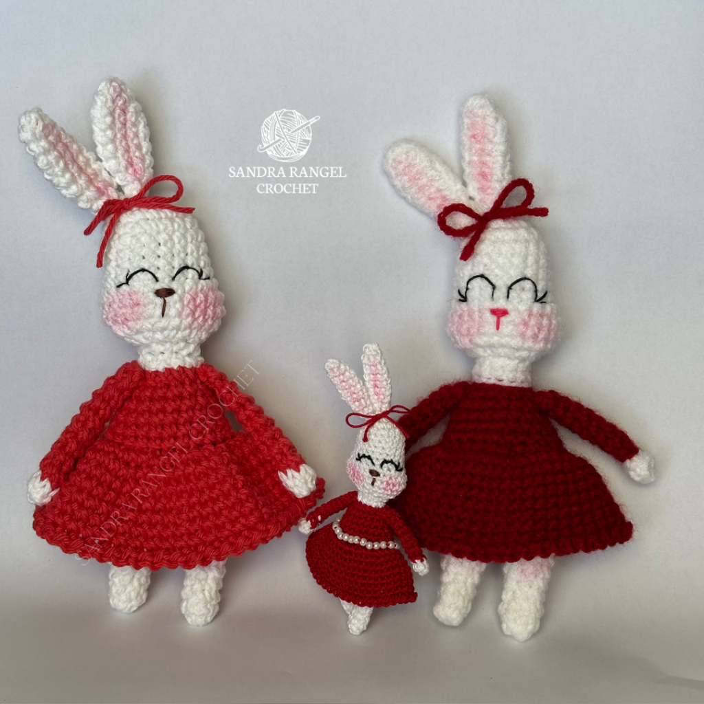 Al mirar el trío, no pude evitar sonreír ante las posibilidades que representaban. La conejita más pequeña, con su encanto portátil, y las más grandes, listas para unirse a la colección de muñecas de cualquier niña, cada pieza es un testimonio de la alegría de crear y la satisfacción de un proyecto bien logrado. Estas conejitas no solo son juguetes; son pequeños guardianes de la infancia, compañeras silenciosas que escuchan secretos y comparten risas.