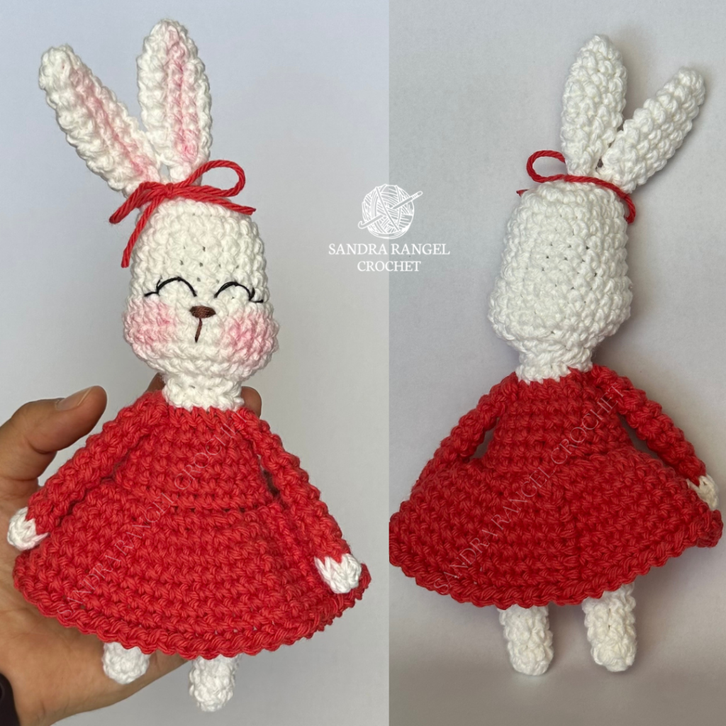 Estoy emocionada de volver a crear estas adorables conejitas en futuros proyectos, quizás con vestidos de diferentes colores o pequeños accesorios como un bolso o un nuevo adorno para sus orejas. Las posibilidades son infinitas, y esa es la magia del crochet: es un arte que nos permite tejer sueños en realidad, una puntada a la vez.